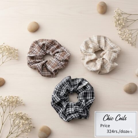 BIG SIZE KOREAN CHECK PRINT SCRUNCHIES (PACK OF 12)