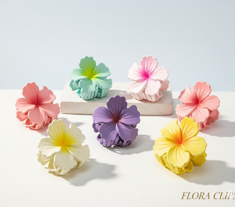 BIG SIZE DUAL COLOUR FLORAL BANANA CLIPS (PACK OF 12)