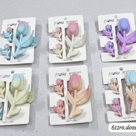 KOREAN DUAL SHADE TULIP FLORAL CLAWS COMBO (PACK OF 12 CARDS)
