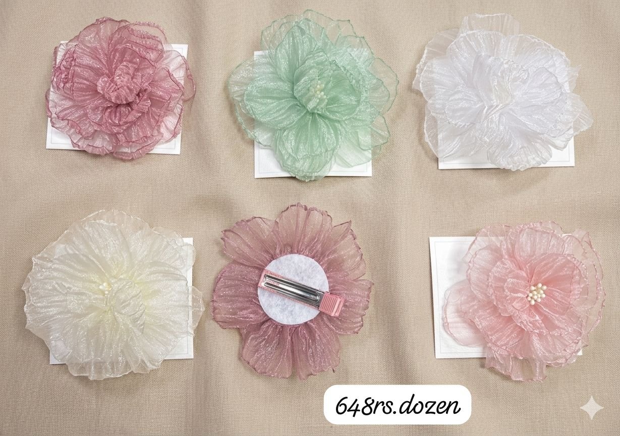 ELEGANT ORGANZA FLOWER CLIPS (PACK OF 12)