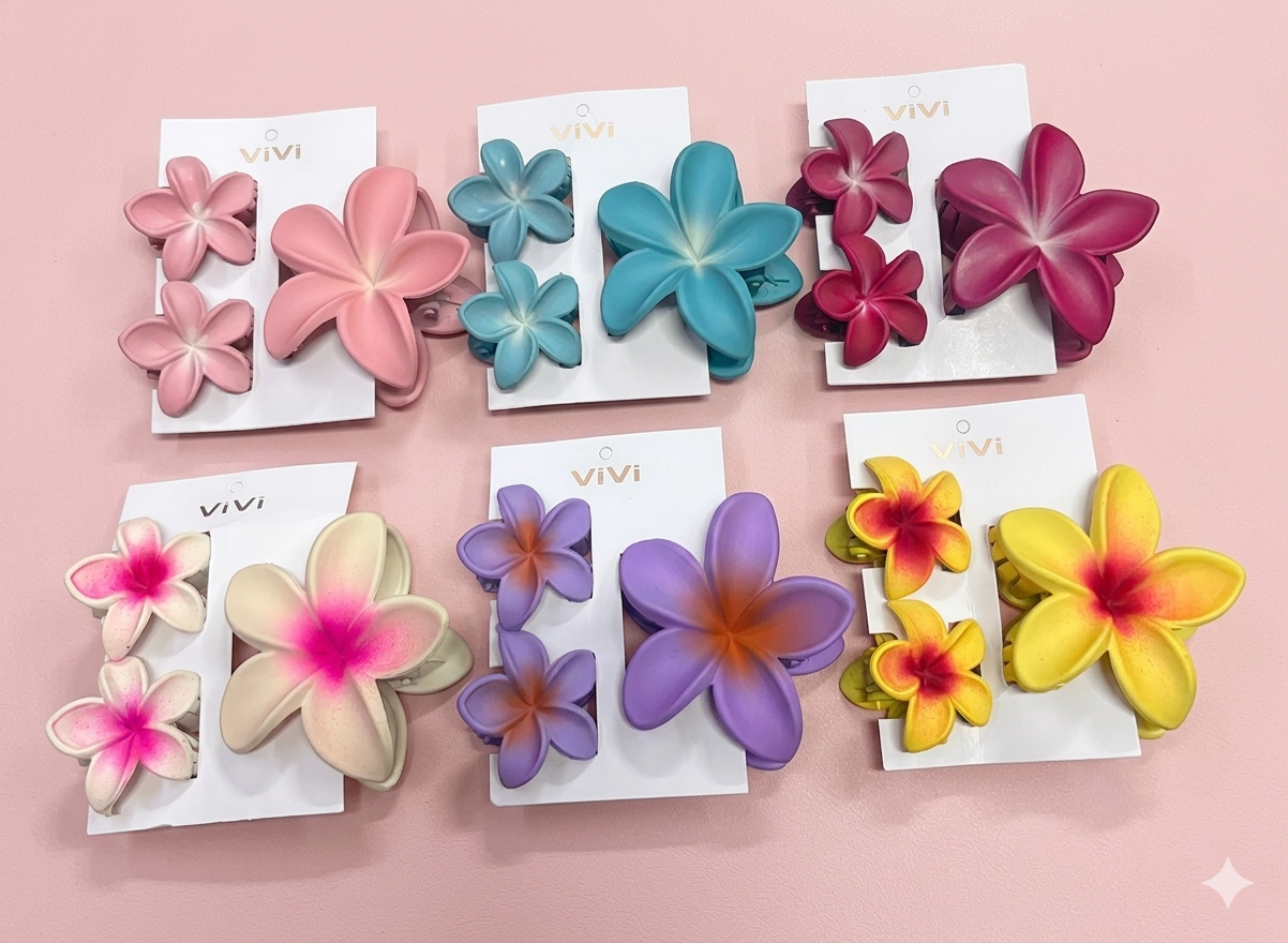 UNIQUE MEDIUM SIZE HIBISCUS FLOWER CLAW CLIPS (PACK OF 12)