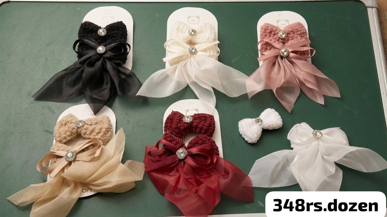 KOREAN FUR HAIR PINS WITH BOW (PACK OF 12) quantity