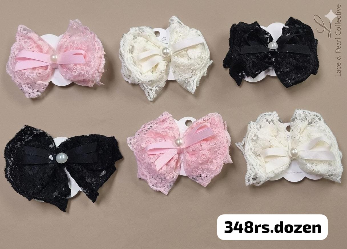 KOREAN NET BOW CLIPS WITH PEARL (PACK OF 12)