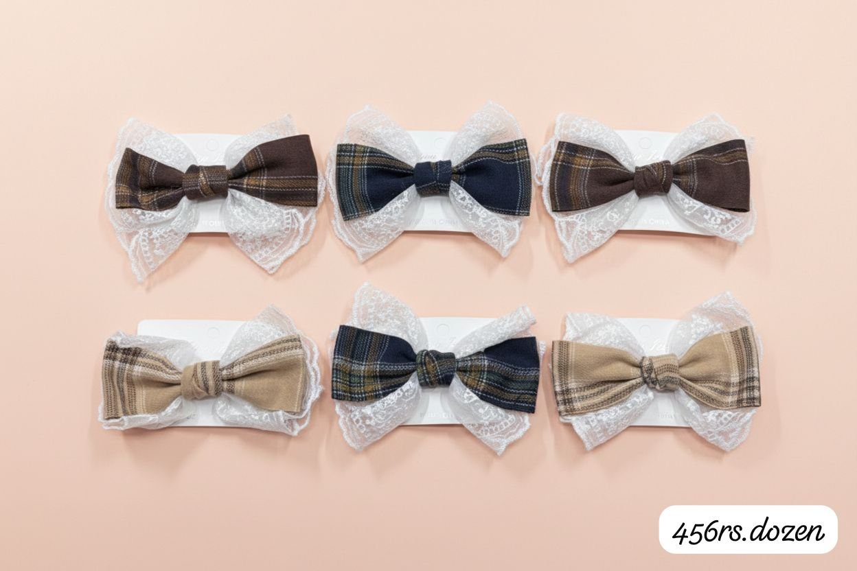 KOREAN NET LACE BOW CLIPS (PACK OF 12) quantity