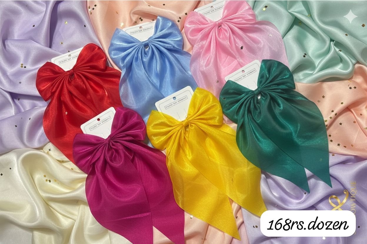 KOREAN ORGANZA BOW HAIR CLIPS (PACK OF 12)