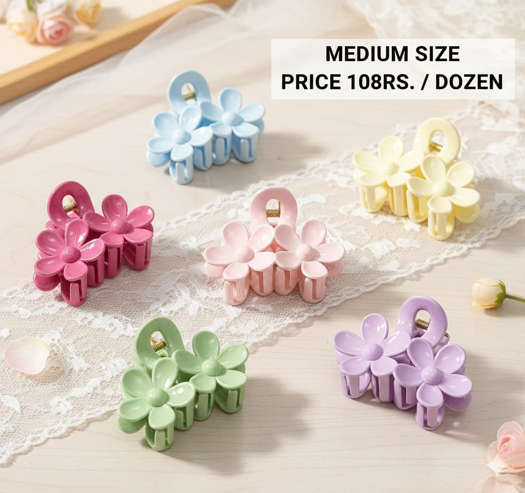 MEDIUM SIZE DUAL DAISY FLORAL CLAW CLIPS (PACK OF 12)