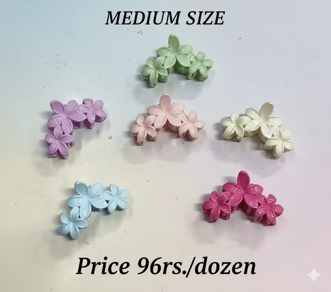 MEDIUM SIZE TRIPLE FLOWER CLAW CLIPS (PACK OF 12)