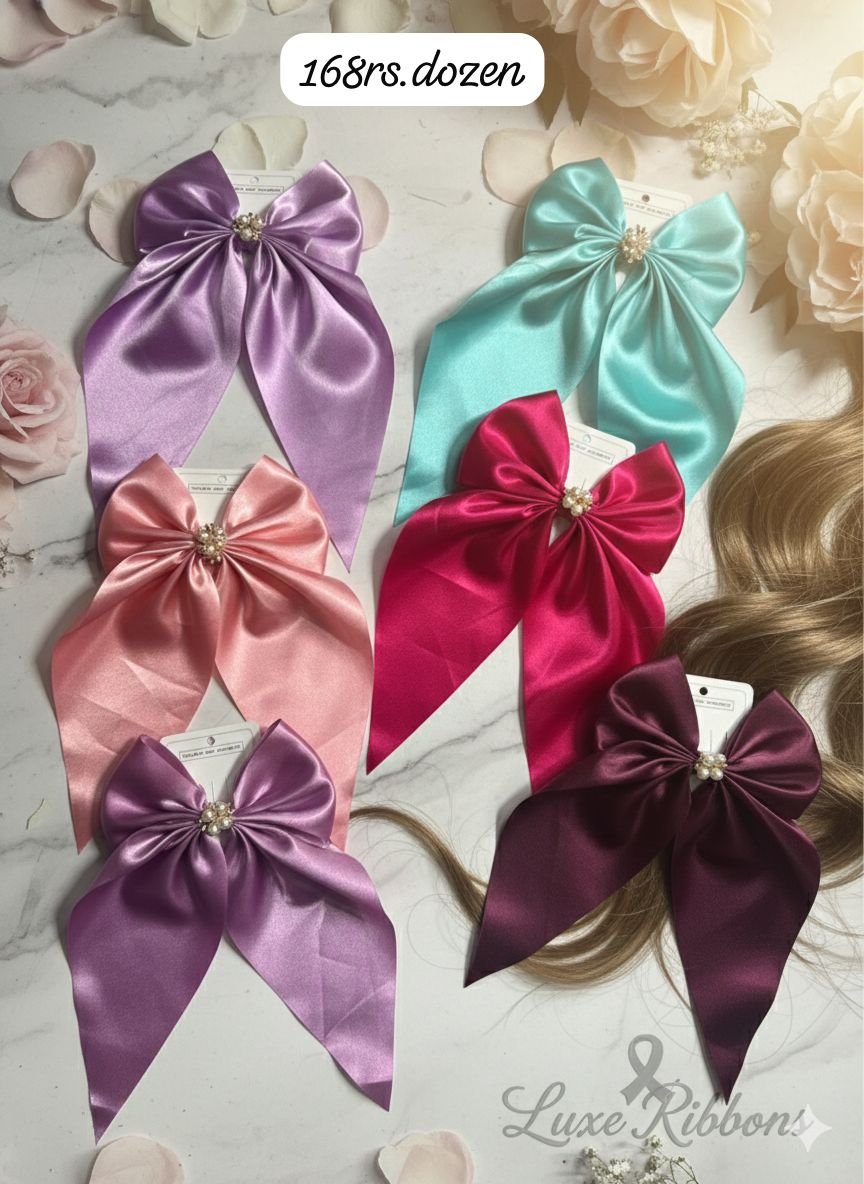PREMIUM KOREAN SATIN BOW CLIPS (PACK OF 12)