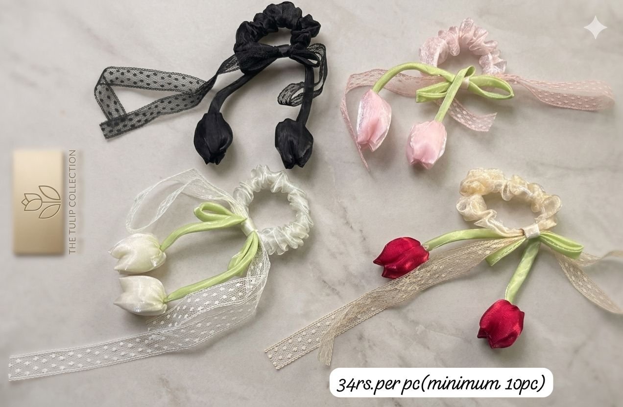 PREMIUM KOREAN TULIP BOW SCRUNCHIES (PACK OF 10)