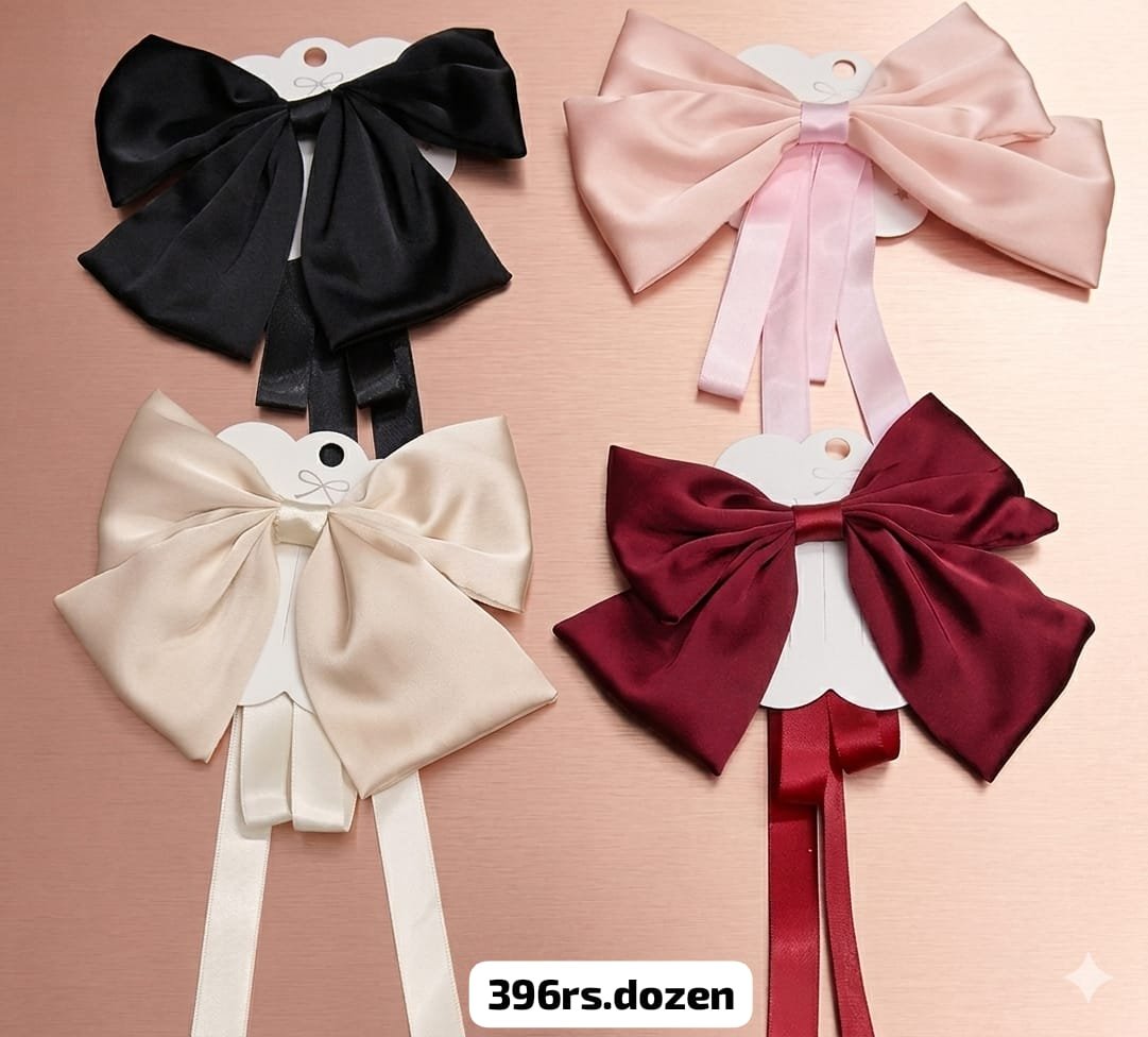 KOREAN PLAIN SATIN BOW CLIPS (PACK OF 12)