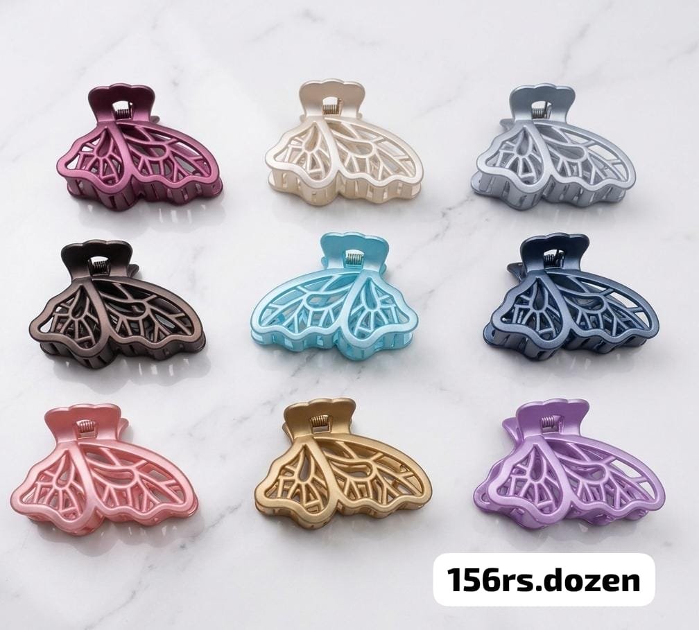 SHINY MEDIUM SIZE BUTTERFLY CLAW CLIPS (PACK OF 12)