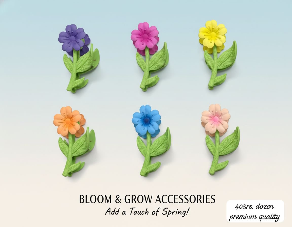 TRENDY FLORAL PATTERN CLAW CLIPS (PACK OF 12)