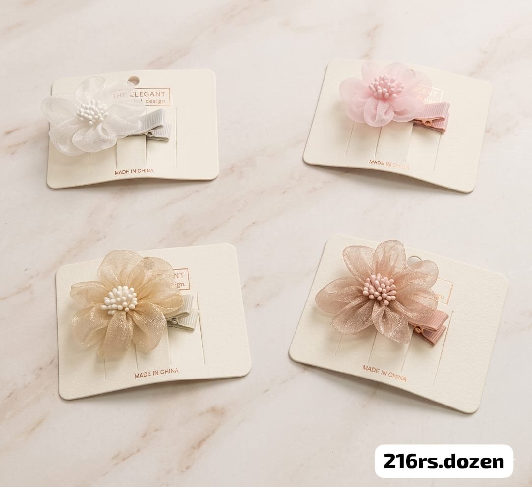 TRENDY KOREAN ORGANZA FLOWER HAIR PINS (PACK OF 12)