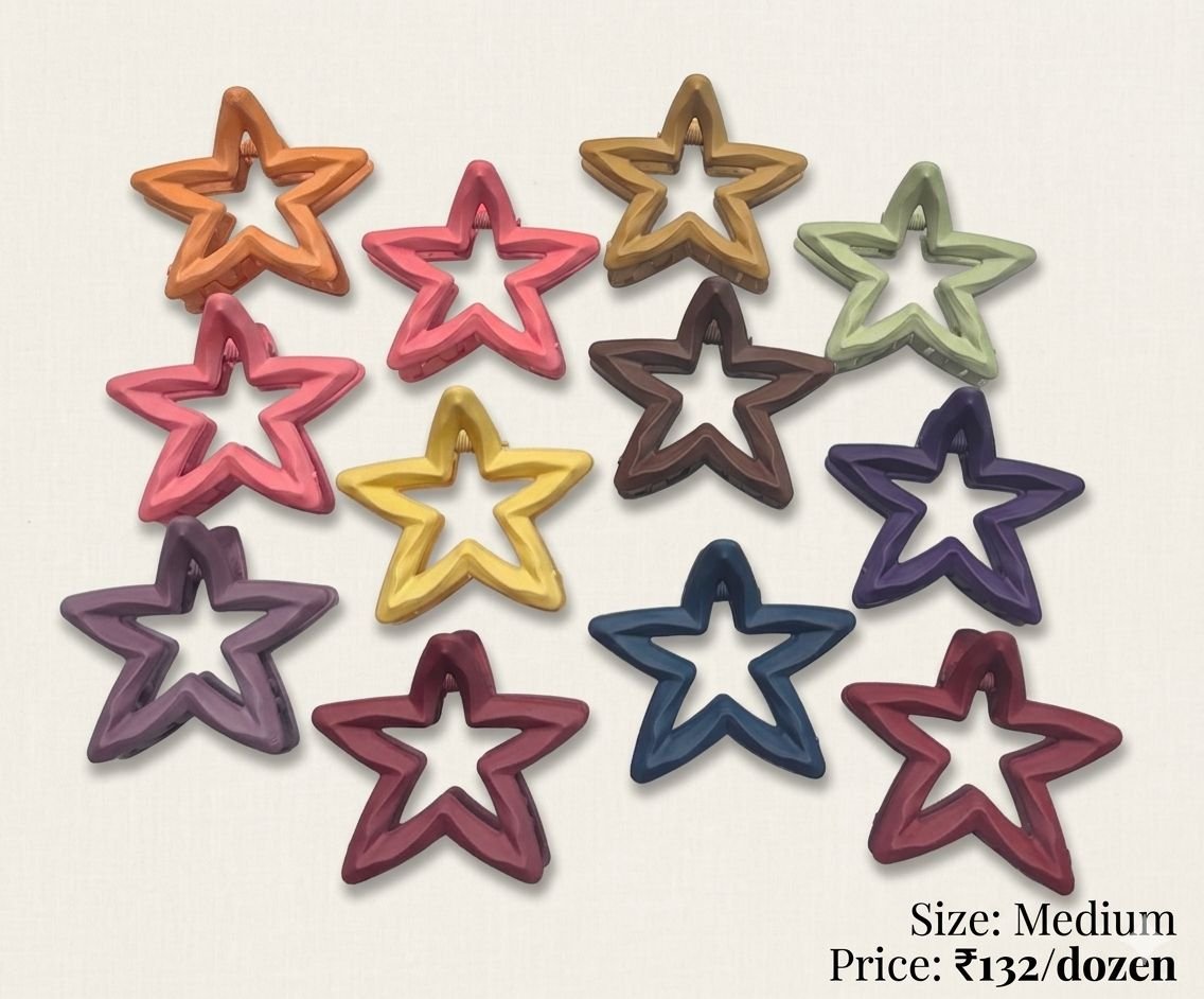 TRENDY MEDIUM SIZE STAR CLAW CLIPS (PACK OF 12)