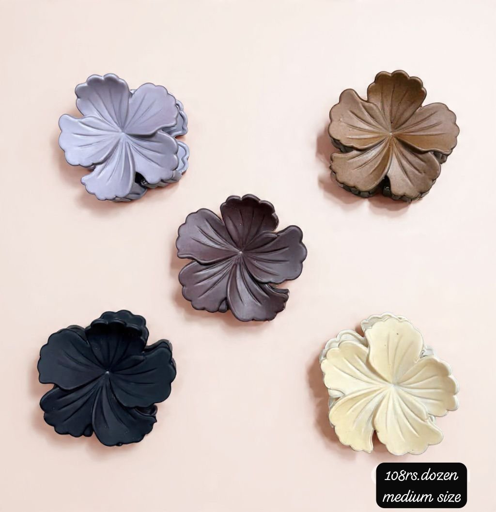 UNIQUE MEDIUM SIZE HIBISCUS FLOWER CLAW CLIPS (PACK OF 12)