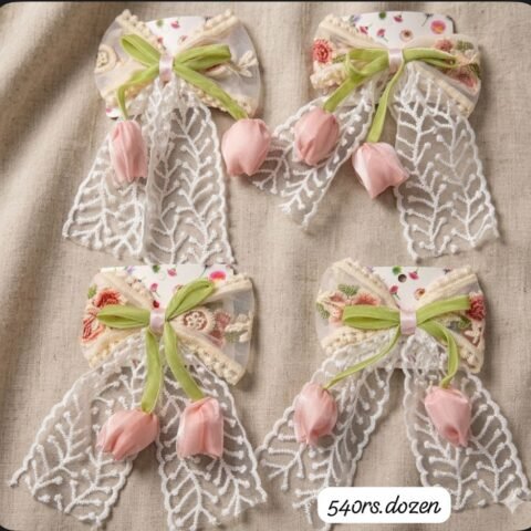 KOREAN NET LACE TULIP BOW CLIPS (PACK OF 12)