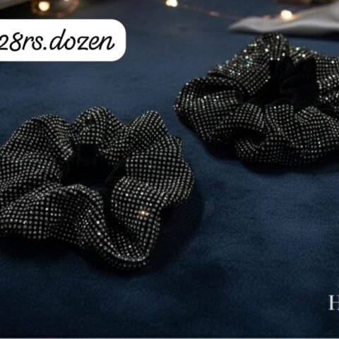 MOST ELEGANT FULL BLACK RHINESTONE SCRUNCHIES (PACK OF 12)