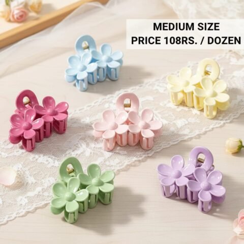 MEDIUM SIZE TRIPLE FLOWER CLAW CLIPS (PACK OF 12)