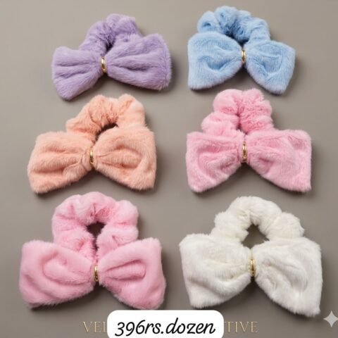 KOREAN PREMIUM FUR BOW SCRUNCHIES (PACK OF 12)