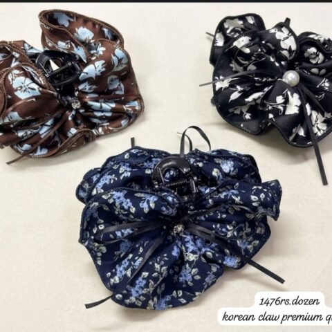 KOREAN PRINTED FABRIC FLOWER CLAWS (PACK OF 12)