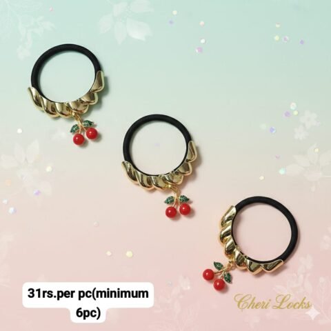 PREMIUM METALLIC HAIR TIES WITH CHERRY CHARM (PACK OF 6)